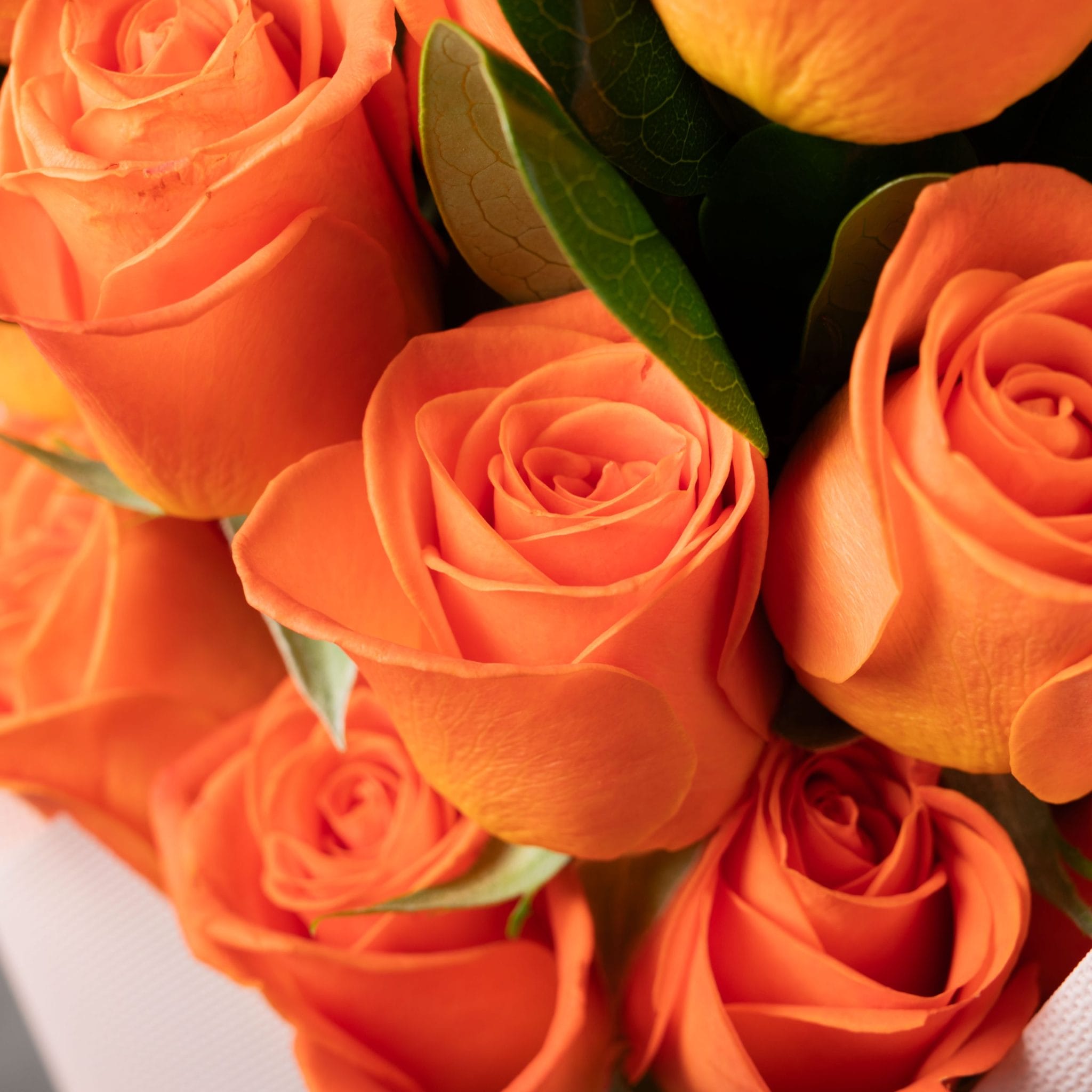 باقة مفعمة بالحيوية من الورود البرتقالية الفاخرة، تنبض بالدفء والطاقة الإيجابية، وتعبّر عن الشغف والتجدد بأسلوب بلومن المميز.
