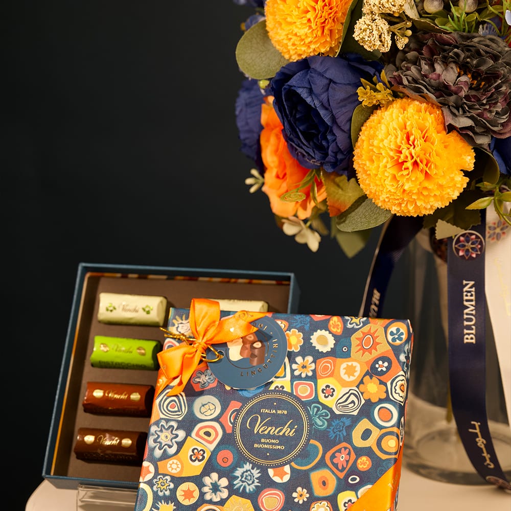 يجسد ذا سانسِت ميدو تنسيقًا زهريًا نابضًا بالحياة مستوحى من ألوان الطبيعة عند الغروب. تتناغم الأزهار الكروية الذهبية مع الزهور البرتقالية المشرقة لتشكل تباينًا جميلًا مع الأزهار الزرقاء الداكنة ولمسات من الأزرق الناعم. وُضع التنسيق في مزهرية زجاجية شفافة ومُزيّن بشرائط أنيقة، ليمنح توازنًا بين الحيوية والرقي. يضفي ذا سانسِت ميدو لمسة من الألوان المبهجة والأناقة الطبيعية، مما يجعله خيارًا مثاليًا لتزيين المساحات العصرية أو لإضافة لمسة مميزة في المناسبات.