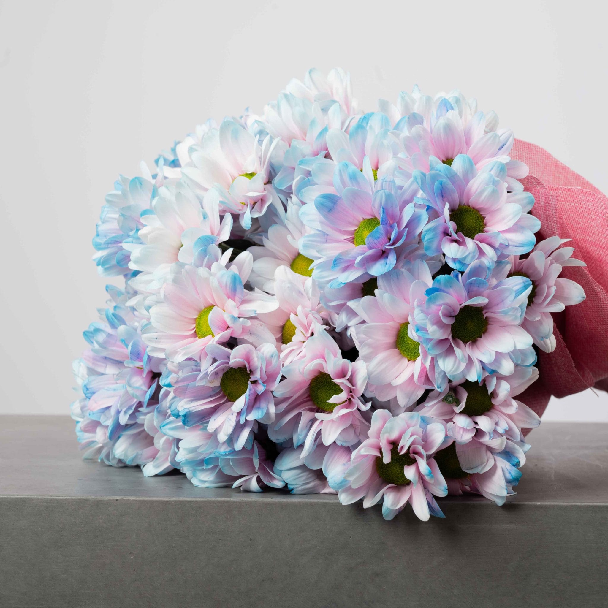 تجسد “كوتن كاندي دريمز” روح الطفولة والهدوء من خلال لوحة ألوان حالمة من الباستيل. تتناغم زهور الأقحوان بين الأزرق واللافندر والأبيض، في مشهد يذكر بسحاب غروبٍ مغمّس بالسكّر. ملفوفة بقماش وردي ناعم، تعبّر هذه الباقة عن الرقة والخيال بلمسة من البهجة.