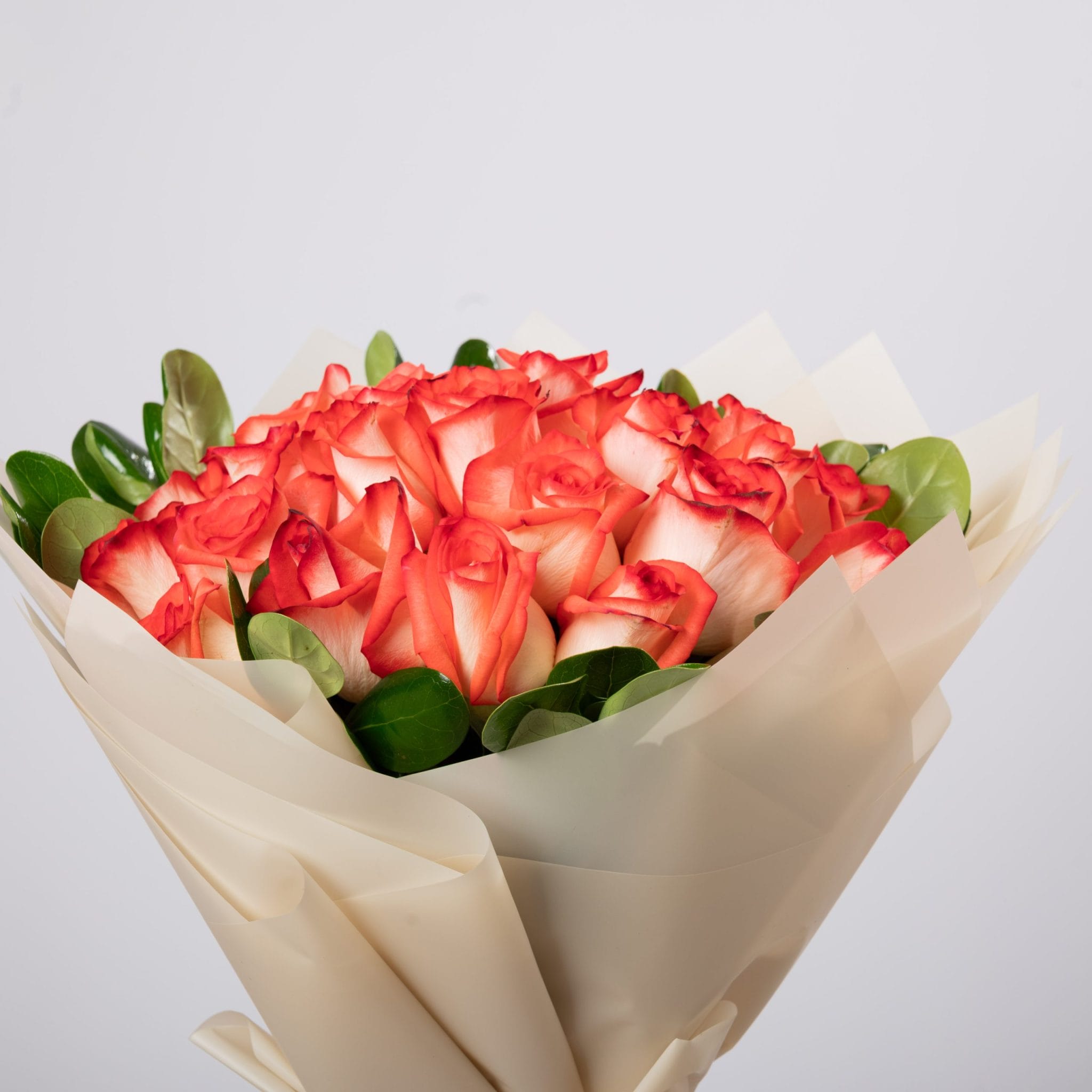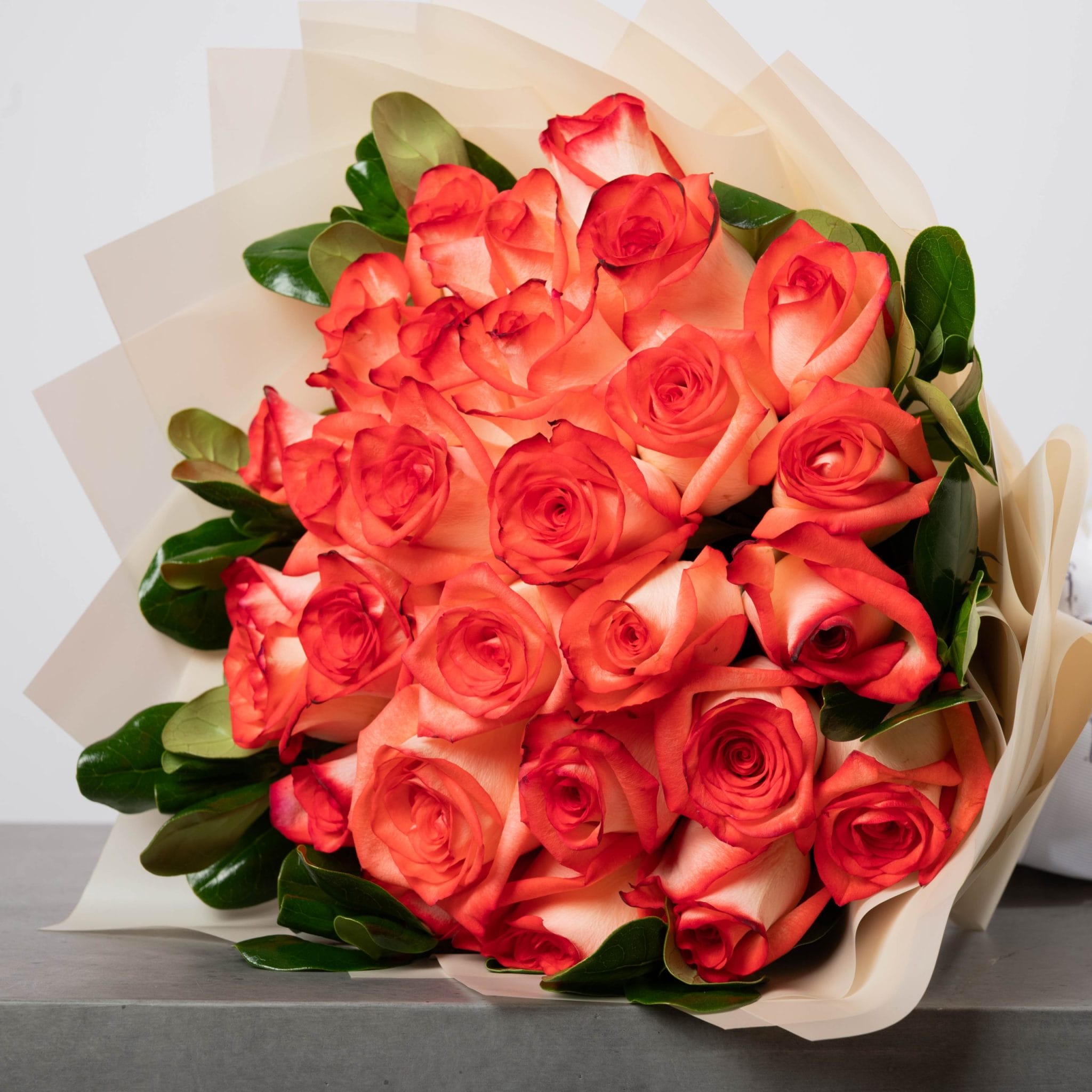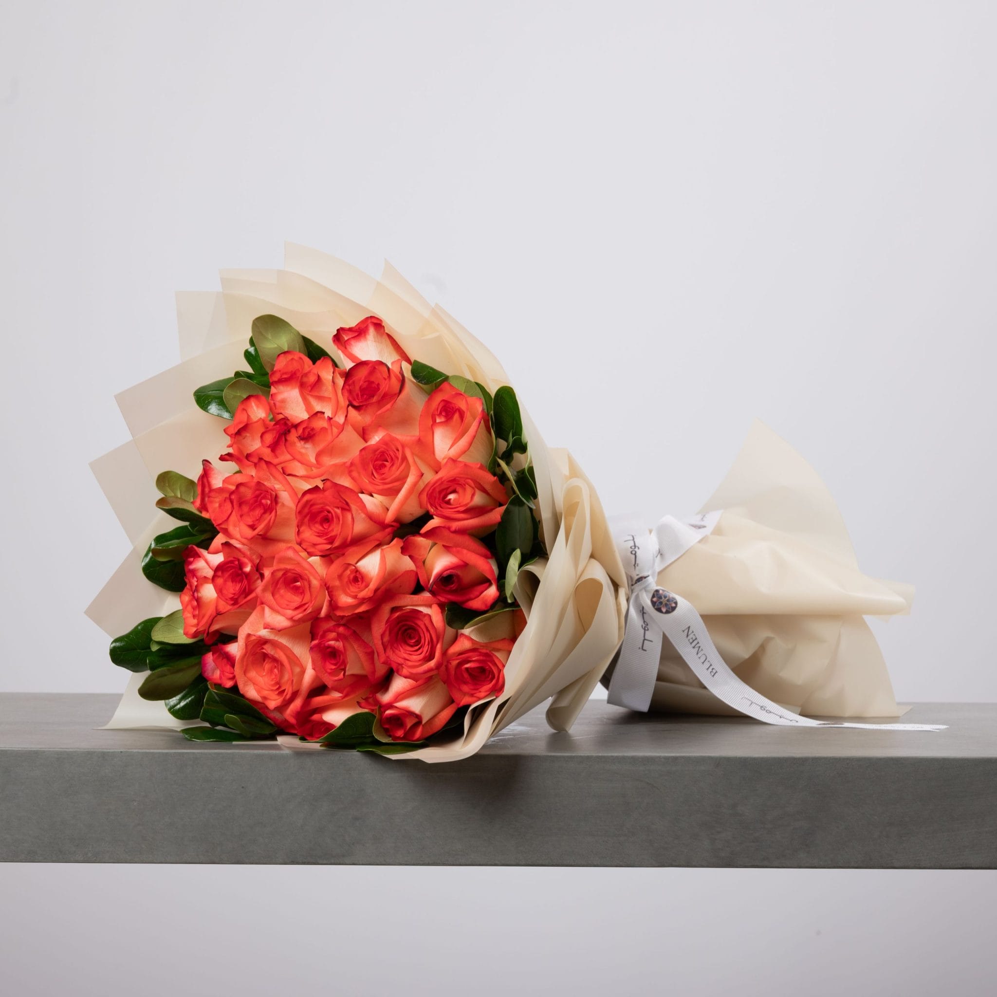 تجسيدٌ نابض للحيوية والأناقة في آنٍ واحد، تضمّ هذه الباقة الفاخرة من الورود البرتقالية لمساتٍ من الدفء والبهجة بتغليفٍ عاجي ناعم يبرز سحر الألوان ببساطةٍ مترفة.